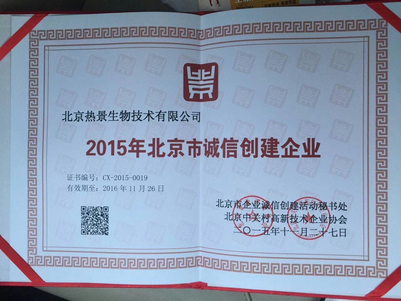 【荣誉】热景生物荣获2015年北京市诚信创建企业奖