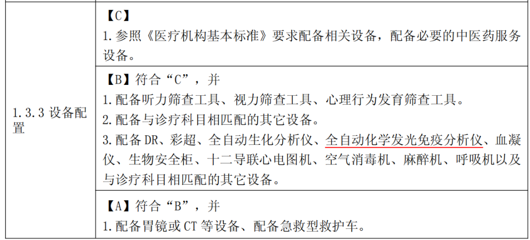 乡镇卫生院要求能开展心肌损伤标志物、肿瘤标志物等检测项目,并明确要求配备全自动化学发光免疫分析仪。