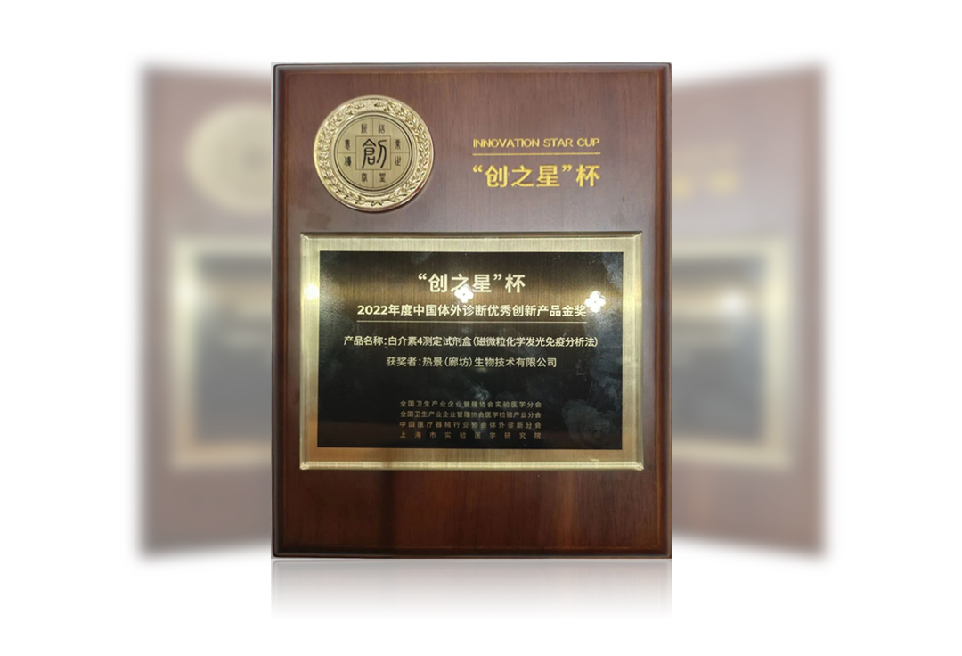 在5月27日“创之声”第八届中国实验医学大会现场,热景生物旗下热景(廊坊)生物技术有限公司生产的专有特色细胞因子系列产品,荣获2022年度“创之星”杯中国体外诊断优秀创新产品金奖。