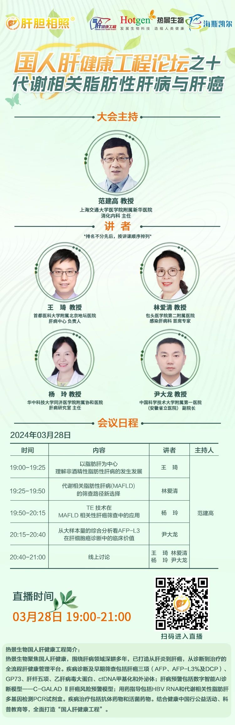 直播预告 | 国人肝健康工程论坛之十——代谢相关脂肪性肝病与肝癌
