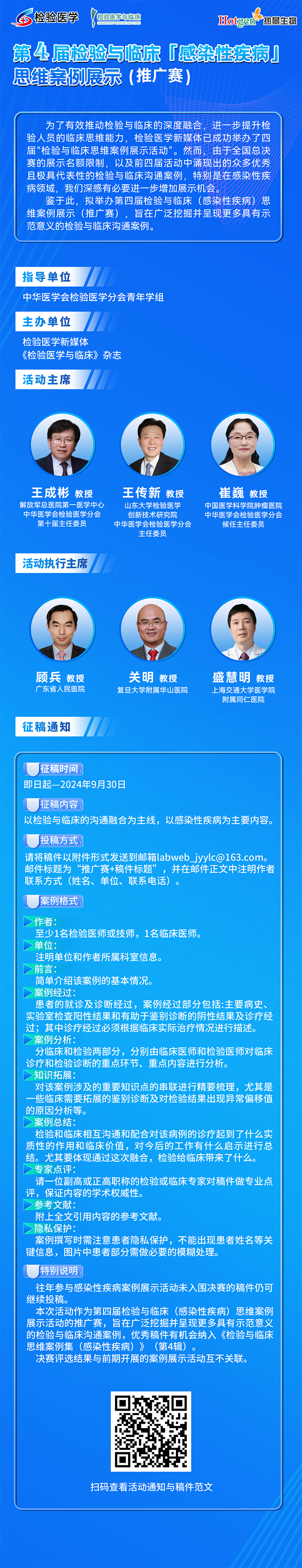 随着检验医学专业的飞速发展,多学科协作诊疗(MDT)的深入推进,检验医学在临床诊疗过程中的地位越来越高、学术地位日益凸显,并被临床医生称为“医生的眼睛”和“医学界的侦探”。同时,检验医学是联系基础医学与临床医学的纽带,是多学科的组合体。现代检验医学倡导以患者为中心,以疾病诊断和治疗为目的,加强检验医学人员学习临床知识,开展检验与临床对话显得尤为重要。