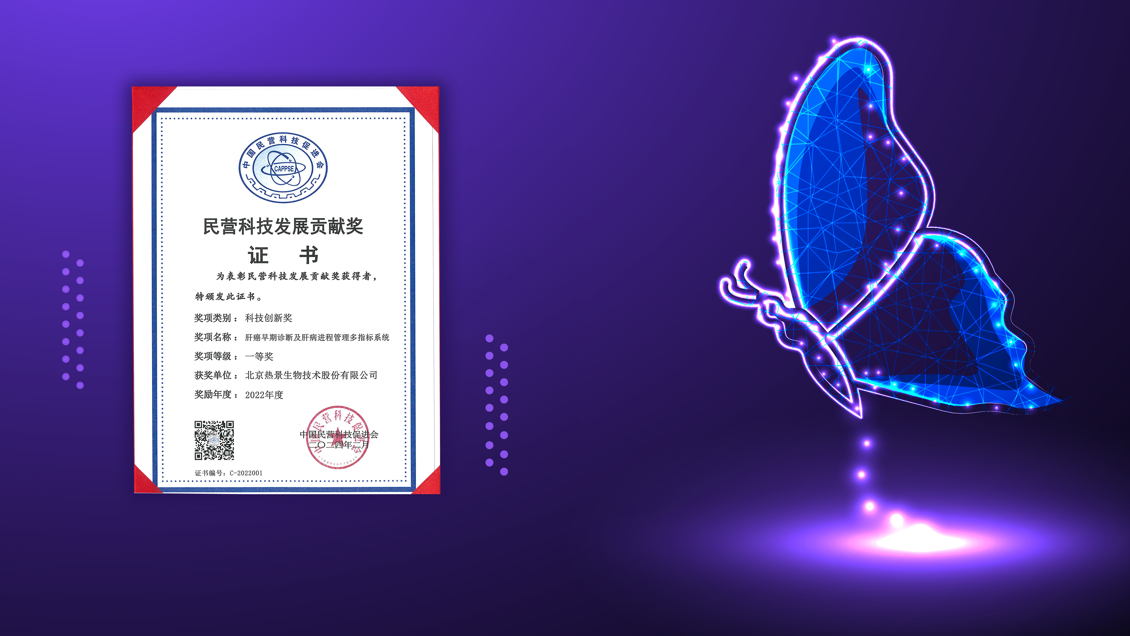 近日,中国民营科技促进会公布了“2022年度民营科技发展贡献奖”获奖企业名单,热景生物“肝癌早期诊断及肝病进程管理多指标系统”项目荣获“2022年度民营科技发展贡献奖”科技创新一等奖。此次获奖的“肝癌...