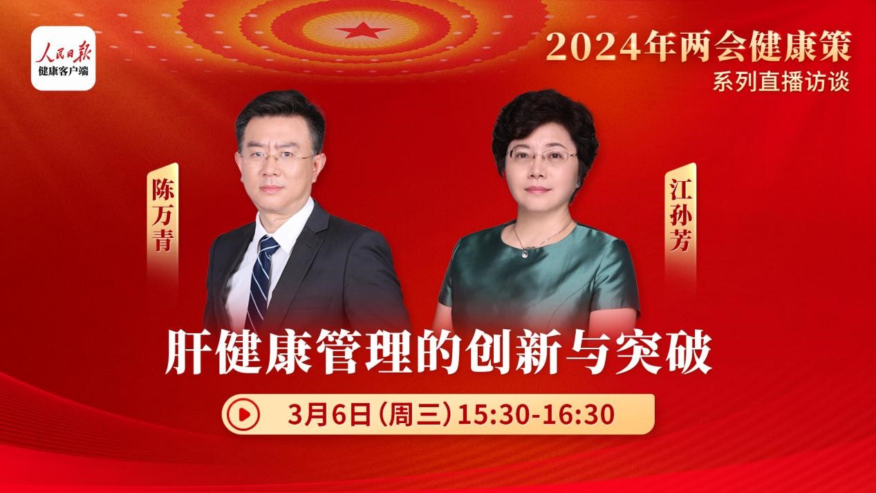 2024年全国“两会”特别策划“两会•健康策”《肝健康管理的创新与突破》专场,将于3月6日在人民日报健康客户端进行直播访谈。