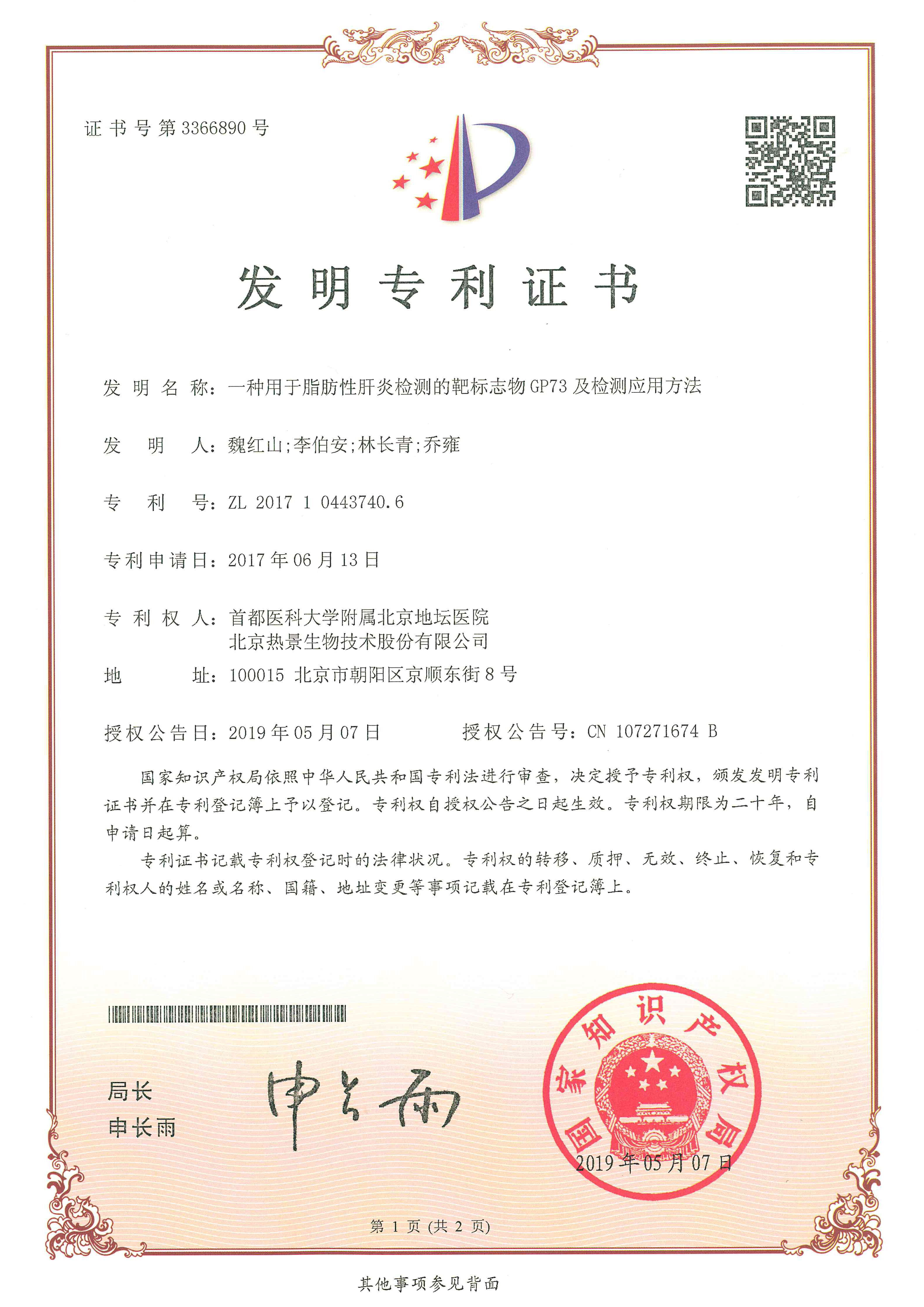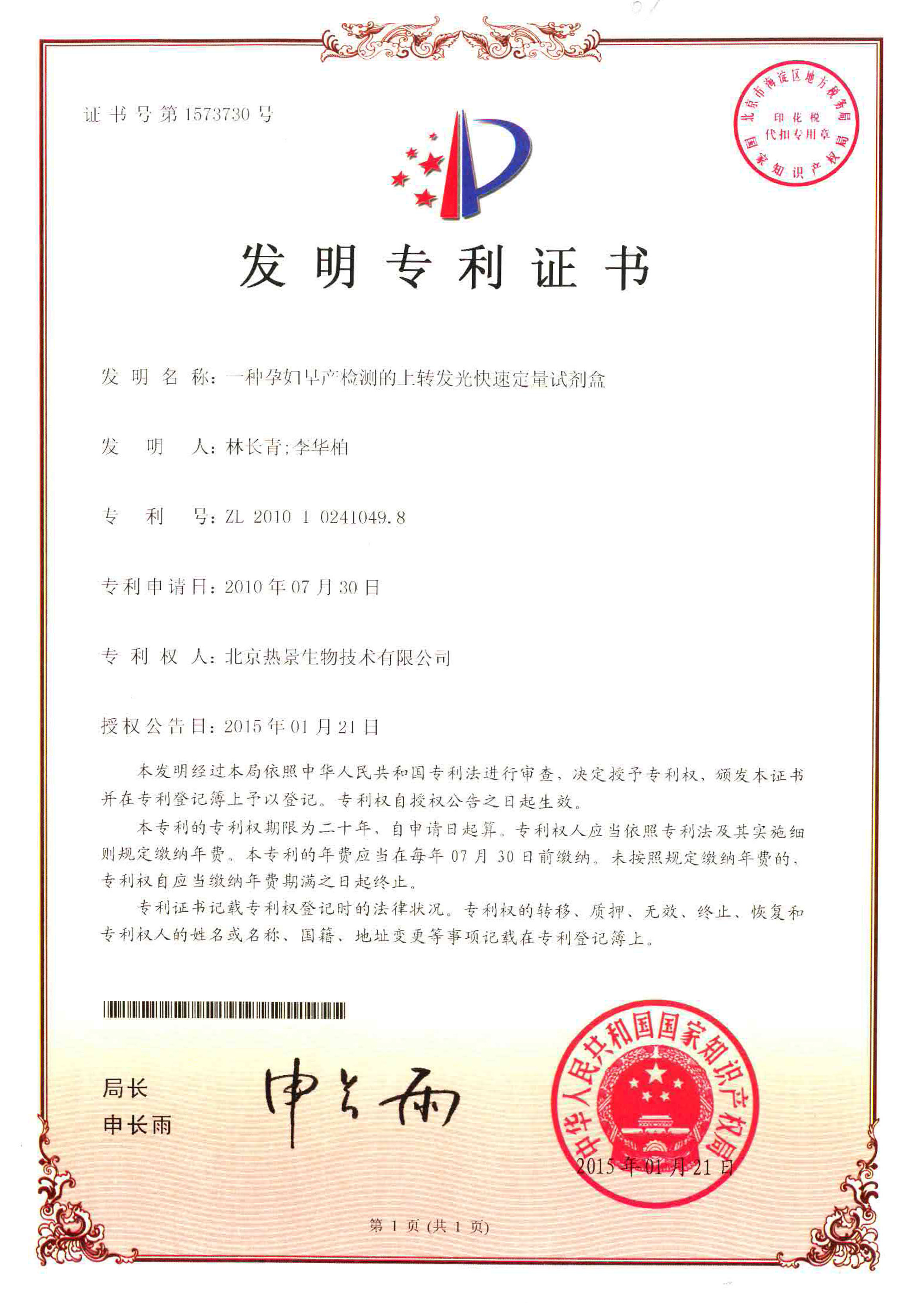 发明专利证书